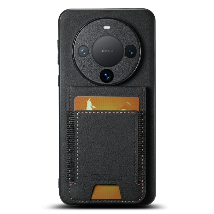 Funda para Huawei Mate 60 Pro Suteni H03 con Soporte para Tarjeta Cuero Litchi (Negro)