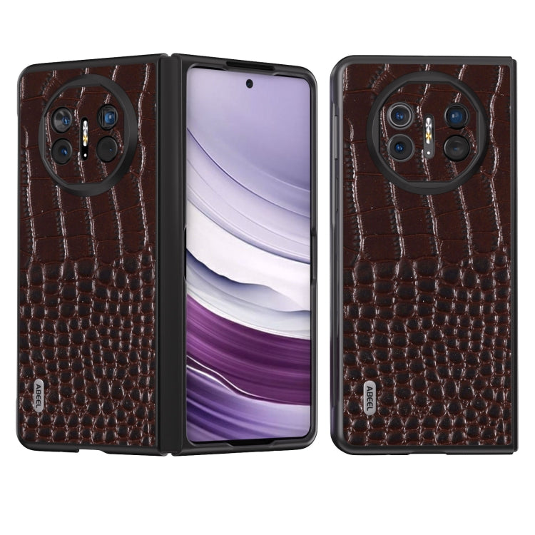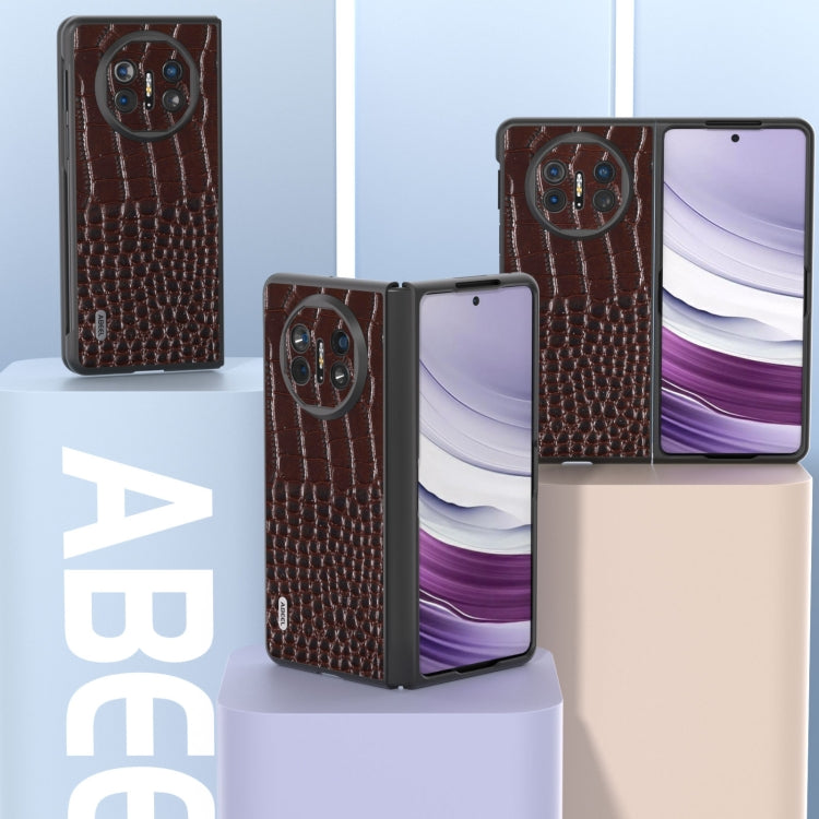 Funda para Huawei Mate X5 Abeel Cuero Genuino con Patrón de Cocodrilo y Borde Negro (Café)