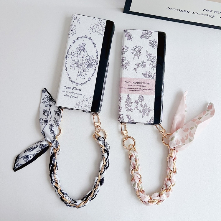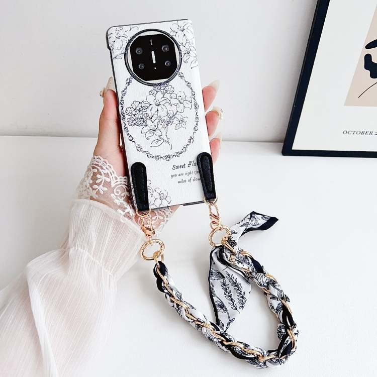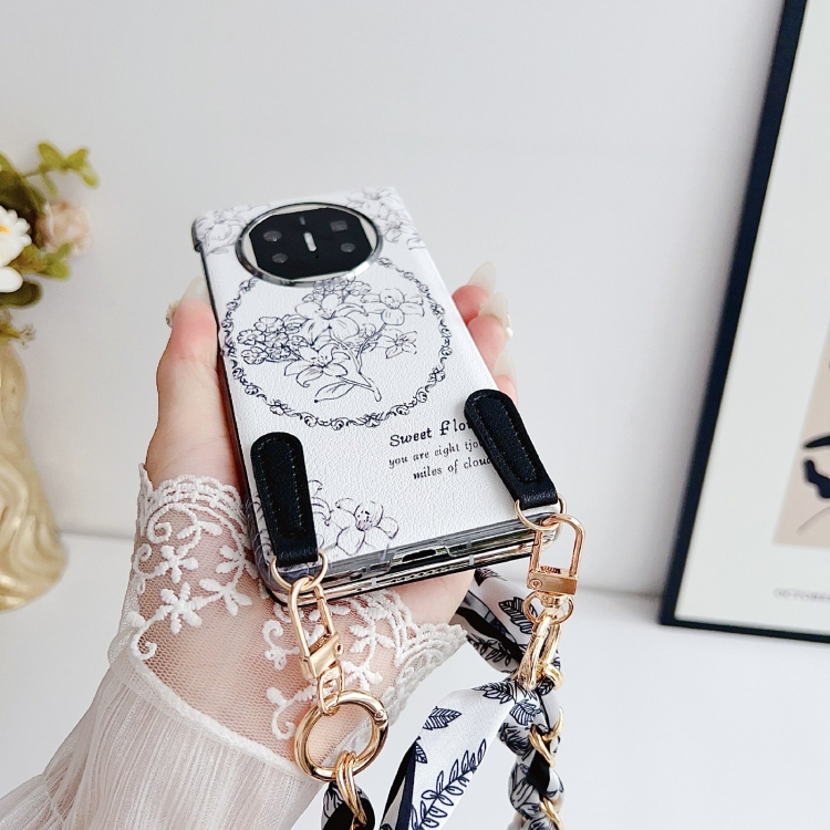 - 1x Funda para Huawei Mate X5 / X2 con Tapa de Cuero, diseño de flores y pulsera (Negro)
