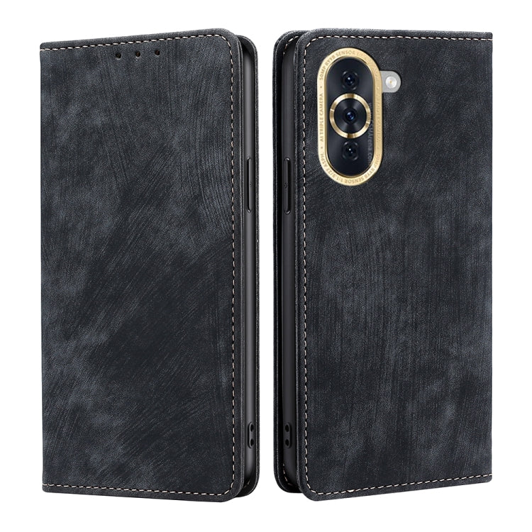 Funda para Huawei Nova 10 Cuero Magnético con Protección RFID y Cepillo Antirrobo (Negro)