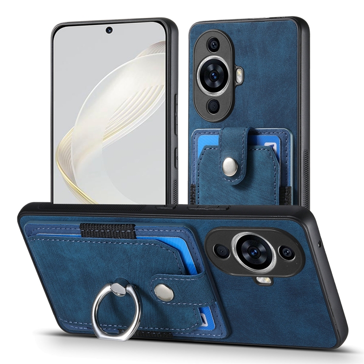 Funda para Huawei Nova 11 con Billetera, Tarjeta y Anillo con Sensación de Piel Retro (Azul)