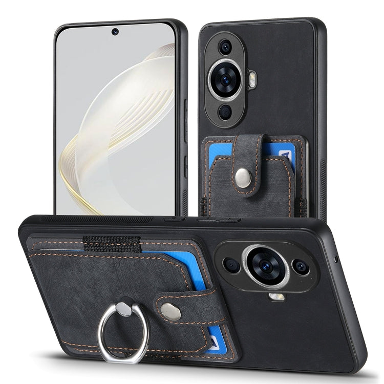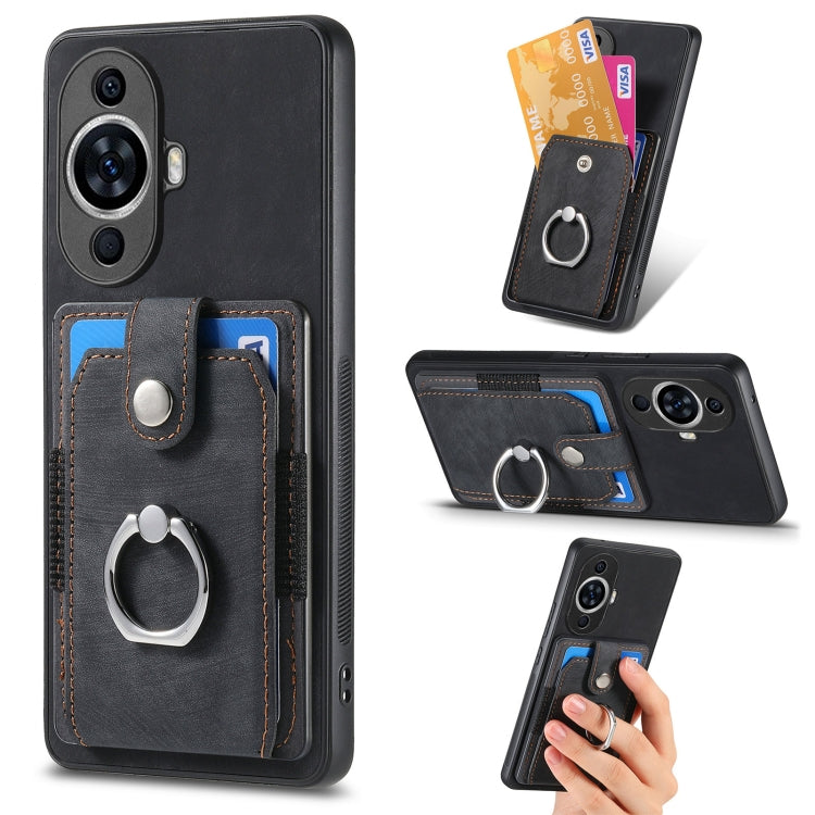 Funda para Huawei Nova 11 con Billetera, Tarjeta, Anillo y Piel Retro (Negro)