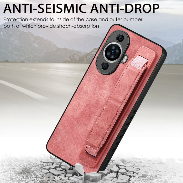 Funda Trasera de Cuero para Huawei Nova 11 con Soporte para Pulsera Retro (Rosa)