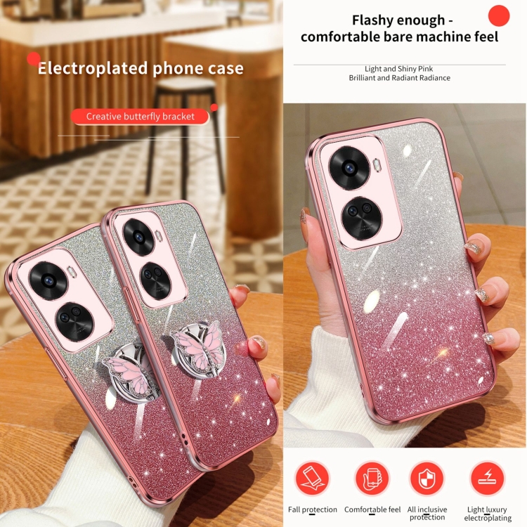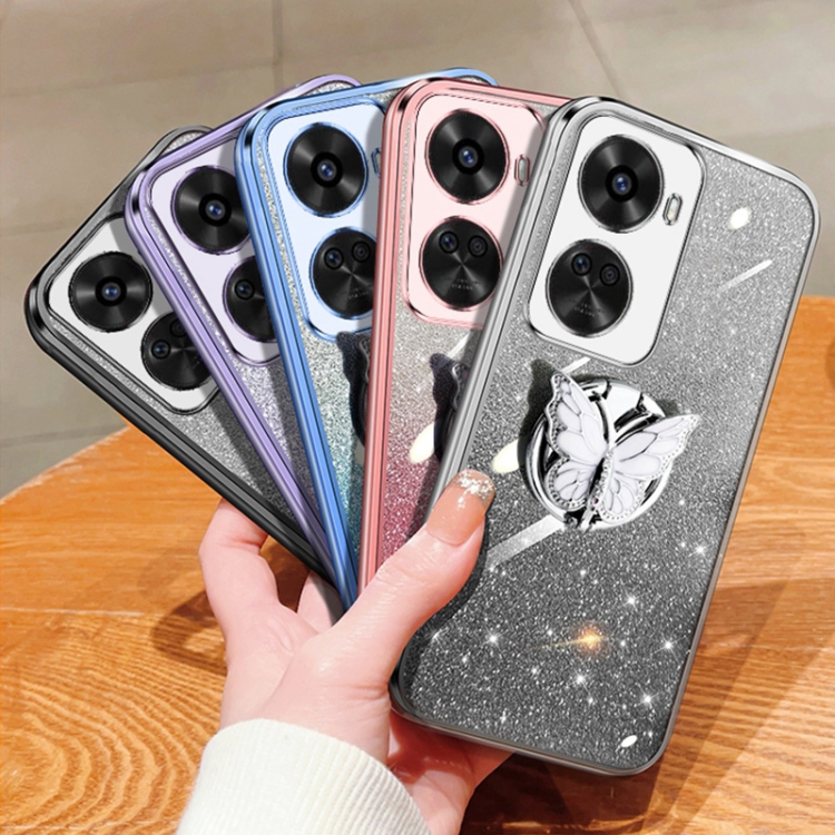 - 1x Funda TPU para Huawei Nova 11 Se con Soporte de mariposa y brillo degradado (Negro)