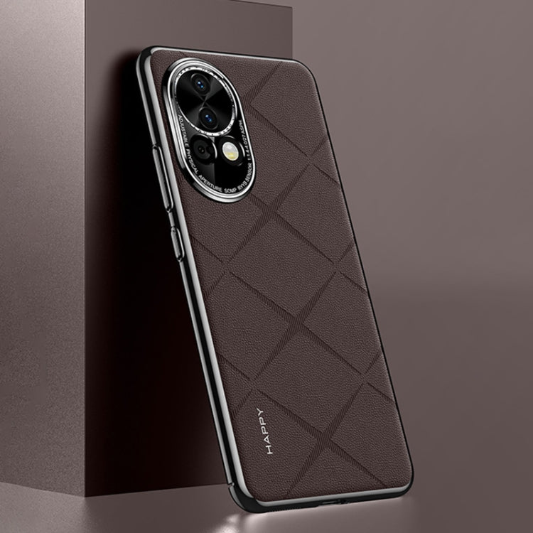 Funda para Huawei Nova 12 de Cuero Liso para Teléfono PC (Marrón)