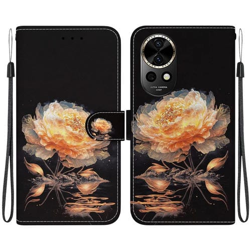 Funda de Cuero para Huawei Nova 12 con Dibujo Coloreado y Textura de Cristal (Peonía Dorada)