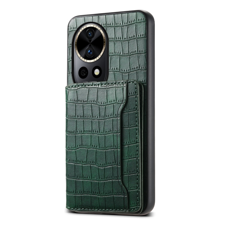 Funda para Huawei Nova 12 Pro con Diseño Bolsa para Tarjetas y Textura de Cocodrilo (Verde)