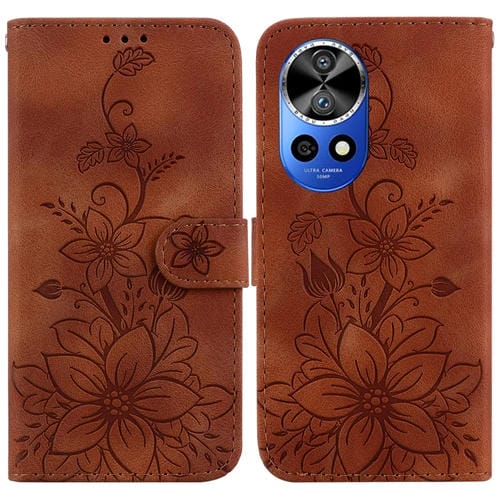 Funda de Cuero en Relieve para Huawei Nova 12 Pro Lily para Teléfono (Marrón)