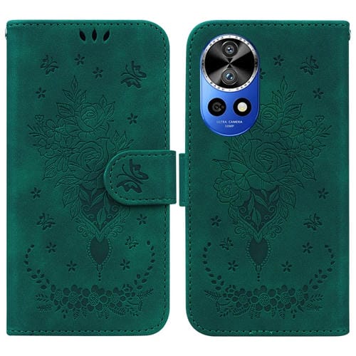 - 1x Funda de Cuero Huawei Nova 12 Pro y Nova 12 Ultra Butterfly Rose en Relieve (Verde)