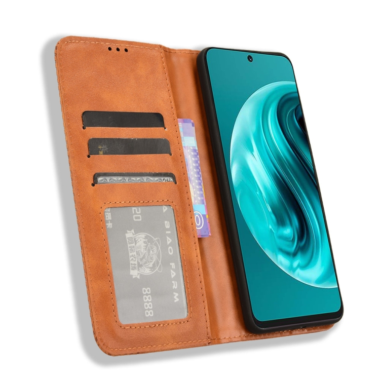 - 1x Funda para Huawei Nova 12I 4G y Enjoy 70 Pro 4G Cuero Textura Retro Hebilla Magnética (Marrón)