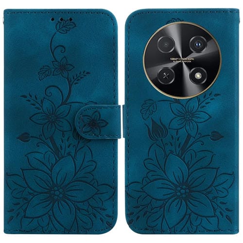 Funda de Cuero para Huawei Nova 12I 4G Global Lily en Relieve (Azul Oscuro)