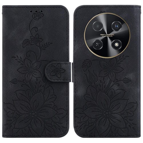 Funda de Cuero para Huawei Nova 12I 4G Global Lily en Relieve (Negro)