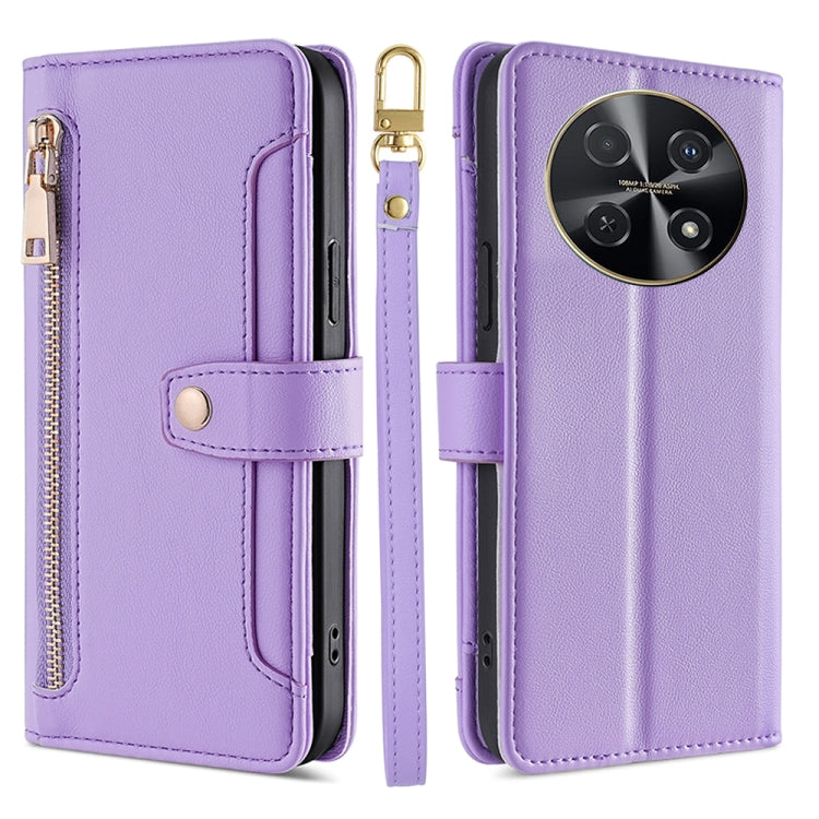 Funda de Cuero para Huawei Nova 12I 4G Lite con Billetera, Cremallera y Textura de Oveja (Púrpura)