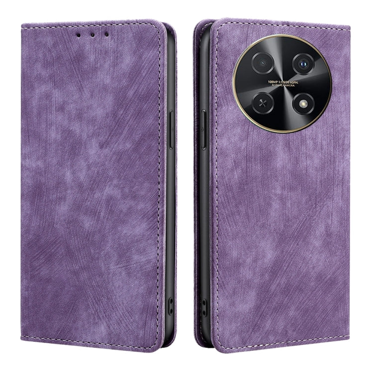 Funda de Cuero Magnética Huawei Nova 12I 4G con Rfid y Cepillo Antirrobo (Púrpura)