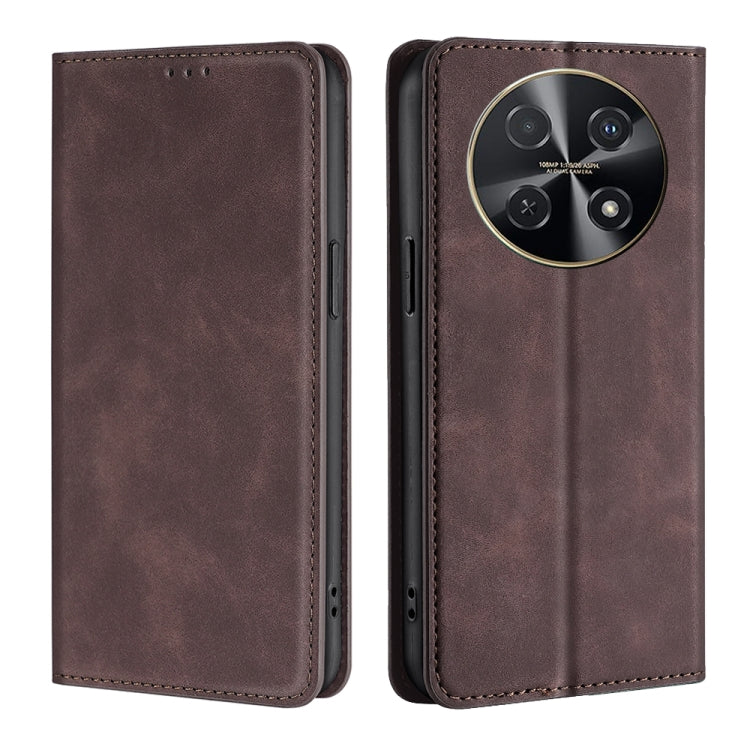 Funda de Cuero Magnética para Huawei Nova 12I 4G Skin Feel (Marrón Oscuro)