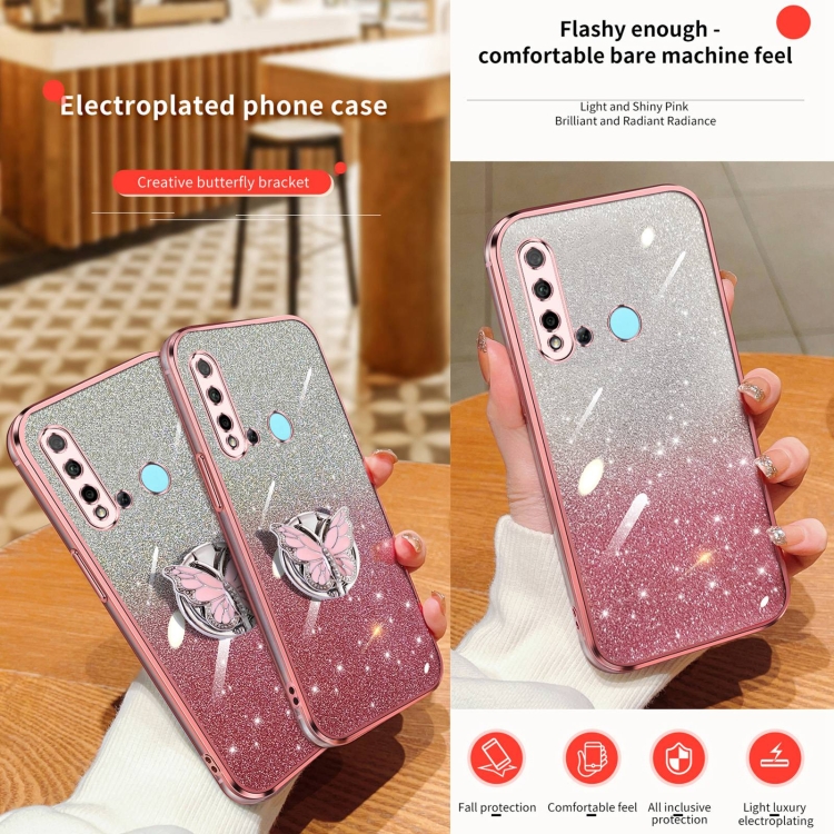 Funda TPU para Huawei Nova 5I con Soporte Mariposa y Brillo Degradado (Púrpura)
