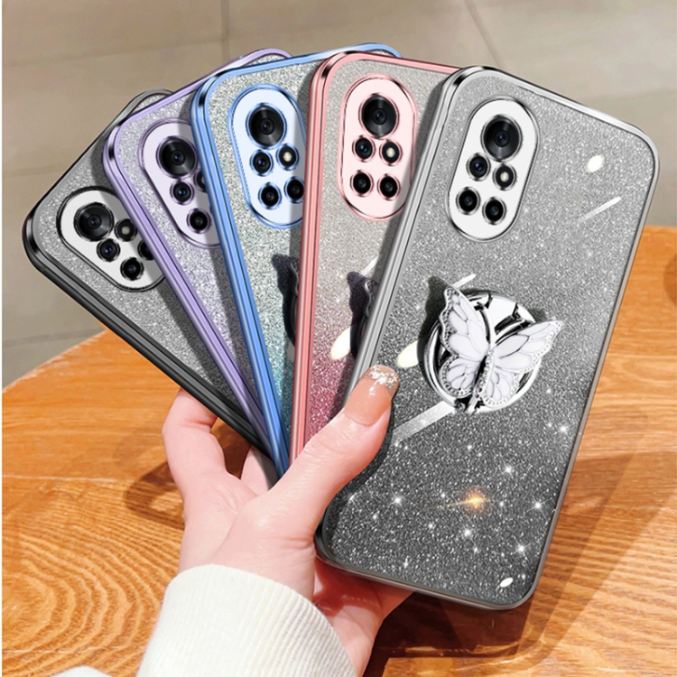 Funda para Huawei Nova 8 TPU con Soporte de Mariposa y Brillo Degradado (Púrpura)