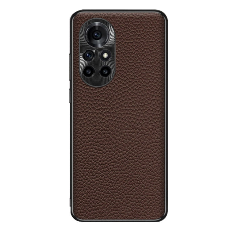 Funda de Teléfono Huawei Nova 8 Pro Textura Litchi Cuero Genuino (Café)