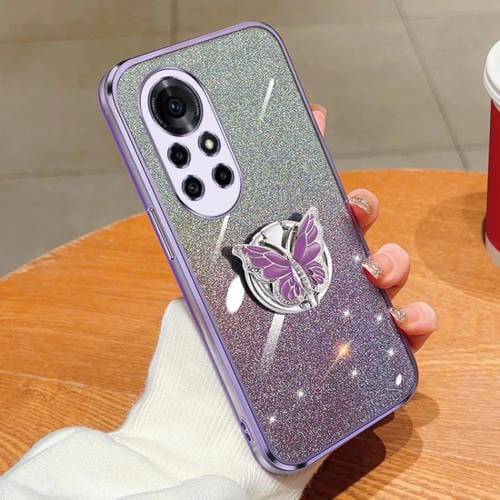 Funda TPU para Huawei Nova 8 Pro con Soporte de Mariposa y Brillo Degradado (Púrpura)