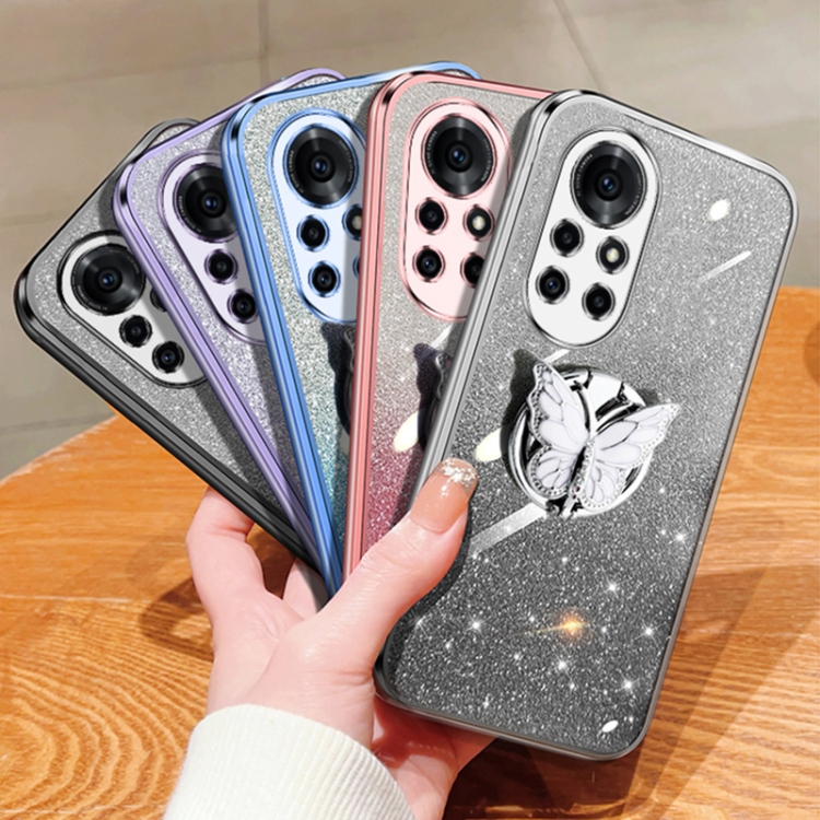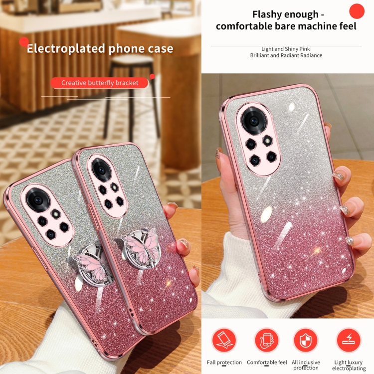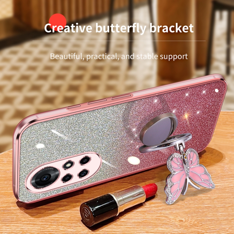 • 1x Funda TPU Huawei Nova 8 Pro con Soporte Mariposa y Brillo Degradado (Rosa)