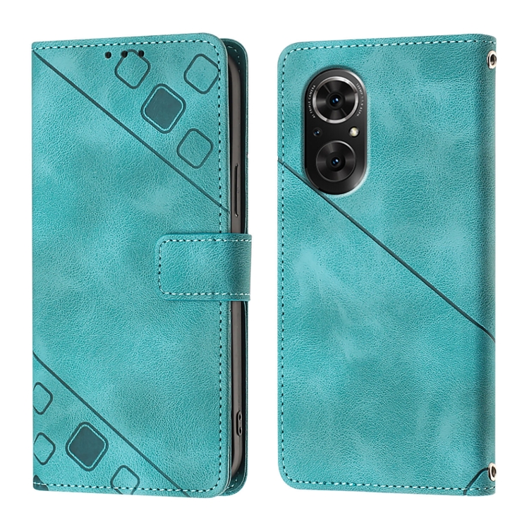 Funda de Cuero Skin Feel para Huawei Nova 9 Se en Relieve (Verde)