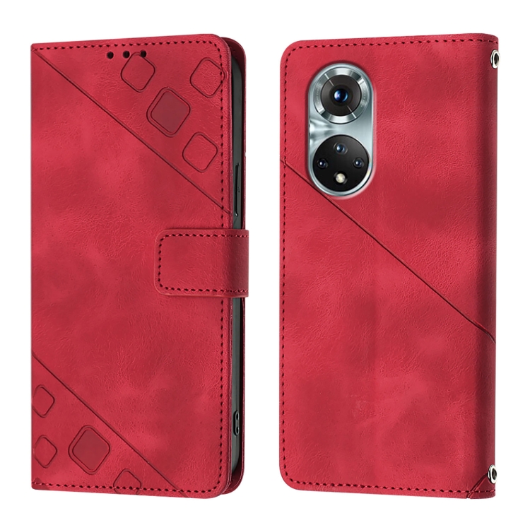- 1x Funda de Cuero Skin Feel para Huawei Nova 9 en Relieve (Rojo)