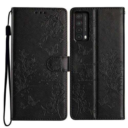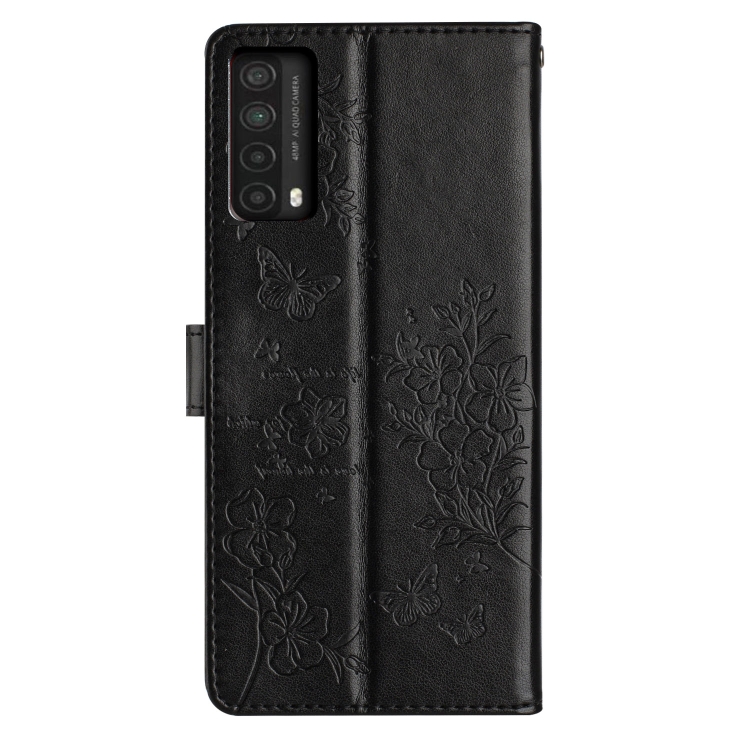 Funda para Huawei P Smart 2021 y Y7A de Cuero con Relieve Flor y Mariposa (Negro)