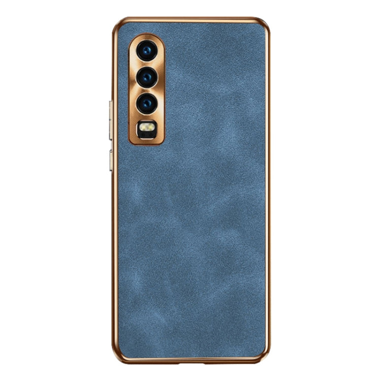 Funda de Cuero Piel de Cordero Galvanizada para Huawei P30 (Azul)