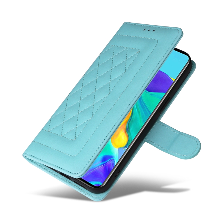 Funda de teléfono Huawei P30 con tapa de cuero Diamond Lattice (Verde Menta)