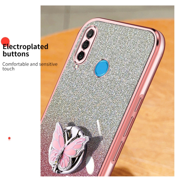 - 1x Funda TPU para Huawei P30 Lite con Soporte de mariposa y brillo degradado (Plata)
