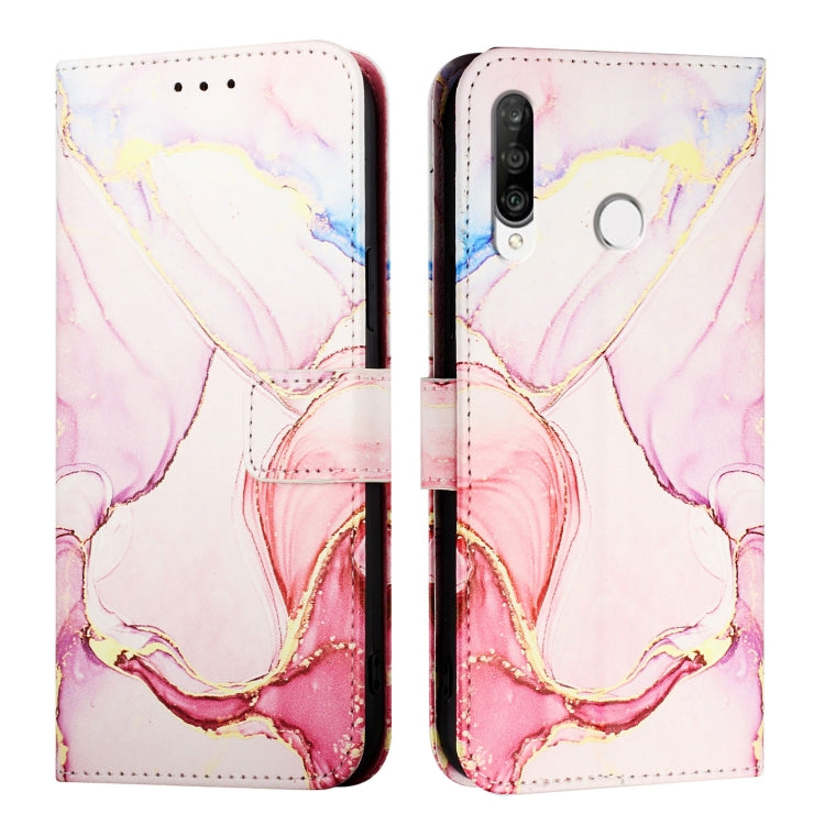 Funda de Cuero con Tapa para Huawei P30 Lite / Nova 4E Pt003 con Patrón Mármol (Oro Rosa)