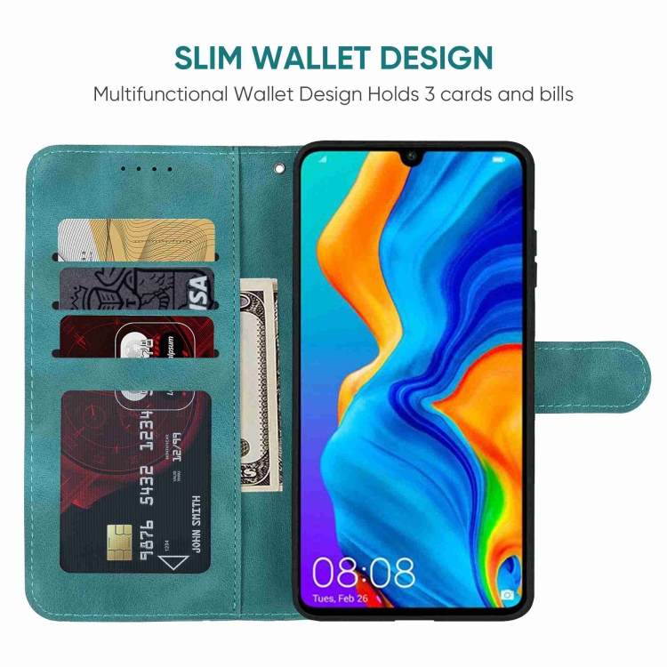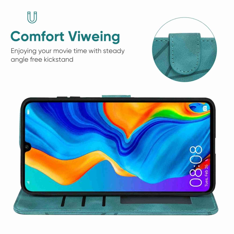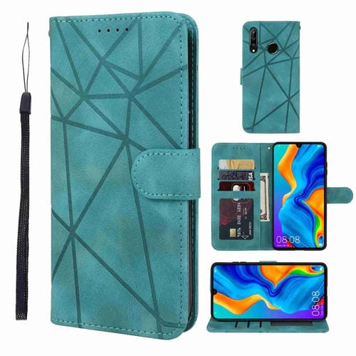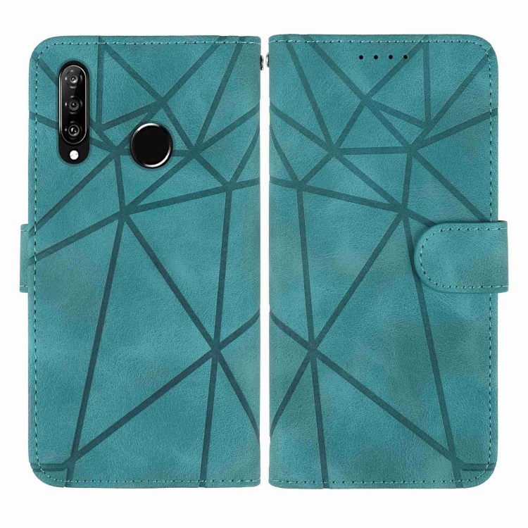 Funda de Cuero para Huawei P30 Lite Skin Feel con Líneas Geométricas (Verde)