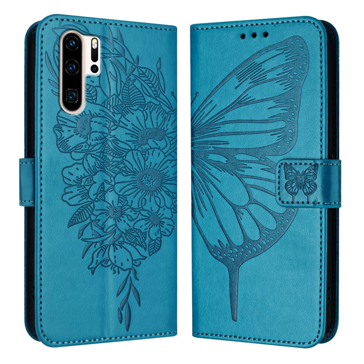 Funda de Cuero para Huawei P30 Pro con Mariposa en Relieve (Azul)