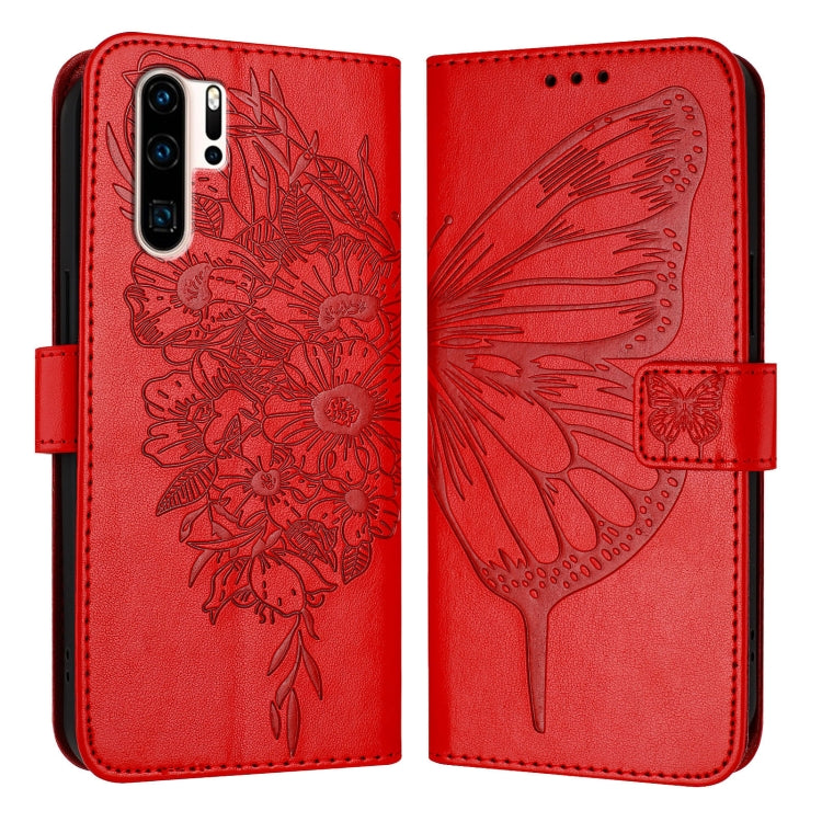 Funda de Cuero para Huawei P30 Pro con Mariposa en Relieve (Rojo)