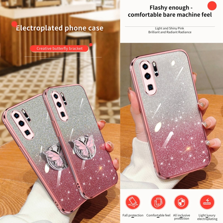 - 1x Funda TPU para Huawei P30 Pro con Soporte de mariposa y brillo degradado (Púrpura)