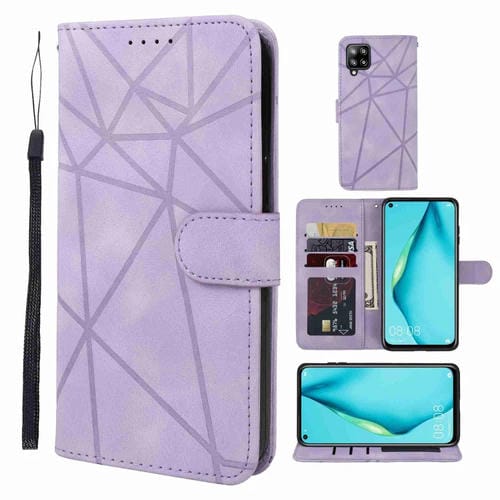 - 1x Funda de Cuero para Huawei P40 Lite Skin Feel con Líneas Geométricas (Púrpura)