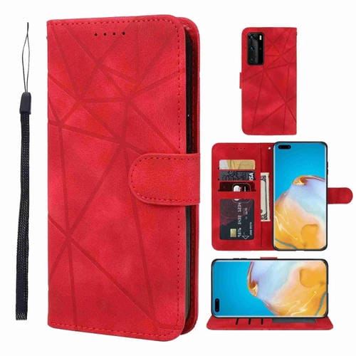 - 1x Funda de Cuero para Huawei P40 Pro con Líneas Geométricas (Rojo)