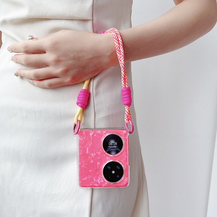 • 1x Funda para Huawei P50 con hebilla Lateral y textura de concha nacarada con pulsera de arcoíris (Rosa)