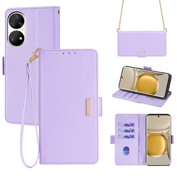 Funda de Cuero para Huawei P50 Pro con Cadena Cruzada (Púrpura)
