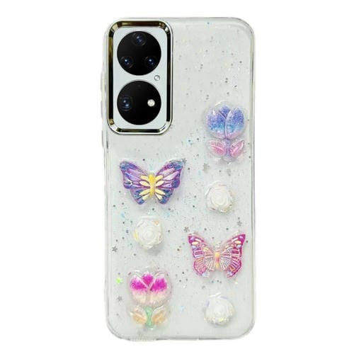 Funda TPU Huawei P50 Pro con Mariposa de Cristal Colorida 3D (Flores de Mariposa)