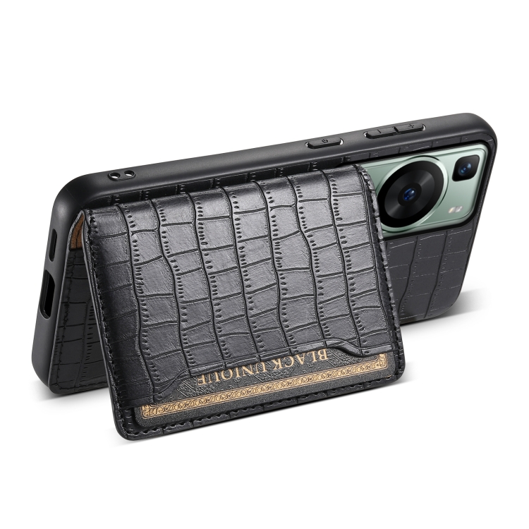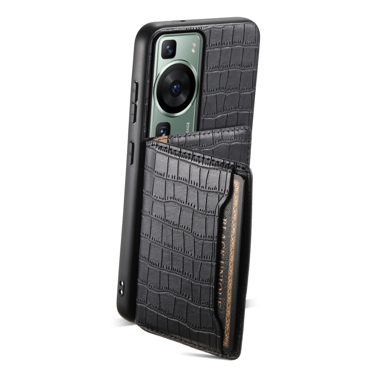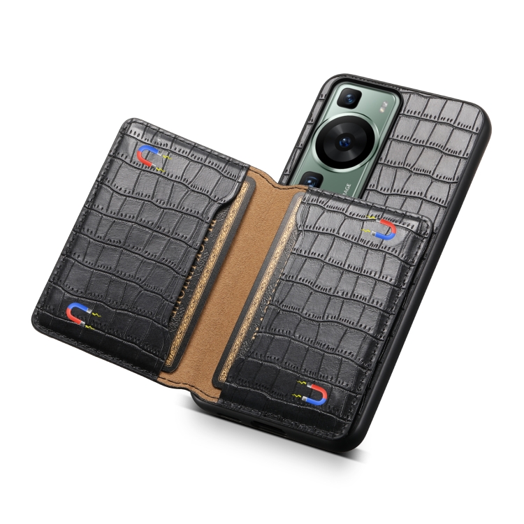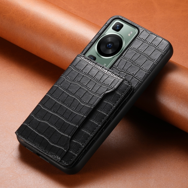 Funda para Teléfono Huawei P60 con Diseño Bolsa de Tarjeta y Textura de Cocodrilo (Negro)
