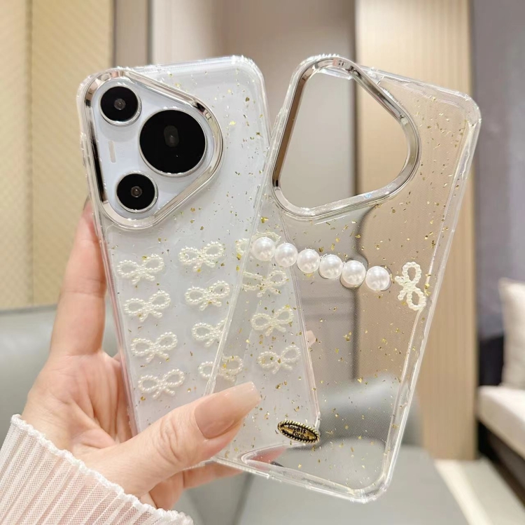 Estuche TPU para Huawei P60 y P60 Pro con Lazo de Perlas y Arcos de Lámina Dorada