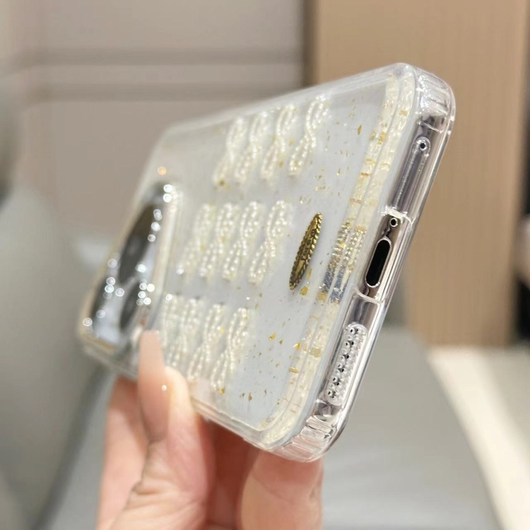 • 1x Estuche TPU para Huawei P60 y P60 Pro con Lazo de Perlas y Arcos de Lámina Dorada