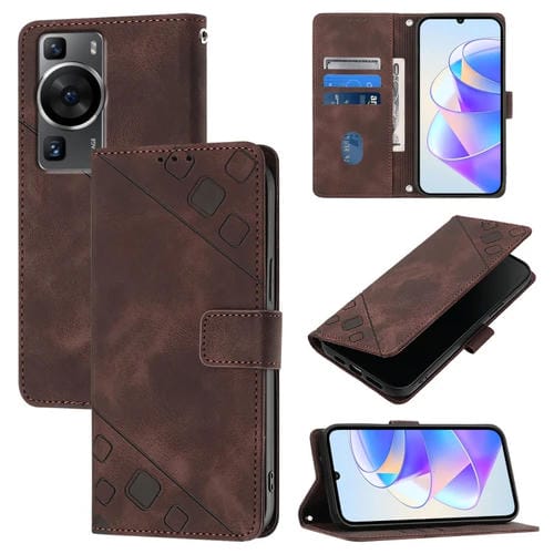 - 1x Funda de Cuero Skin Feel para Huawei P60 y P60 Pro en Relieve (Marrón)