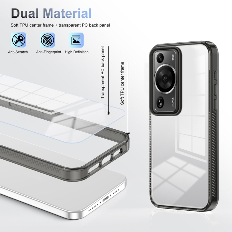 Funda para Huawei P60 Pro TPU Híbrida Acrílico Transparente Antideslizante 2,5mm (Negro)