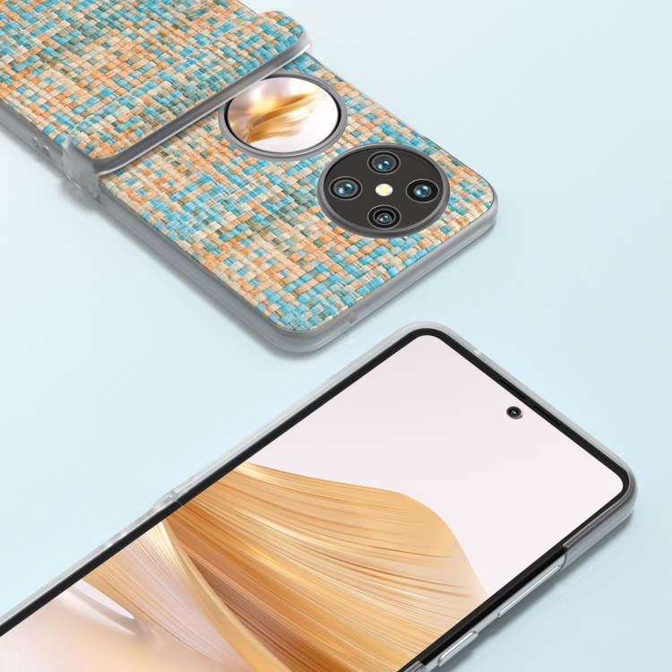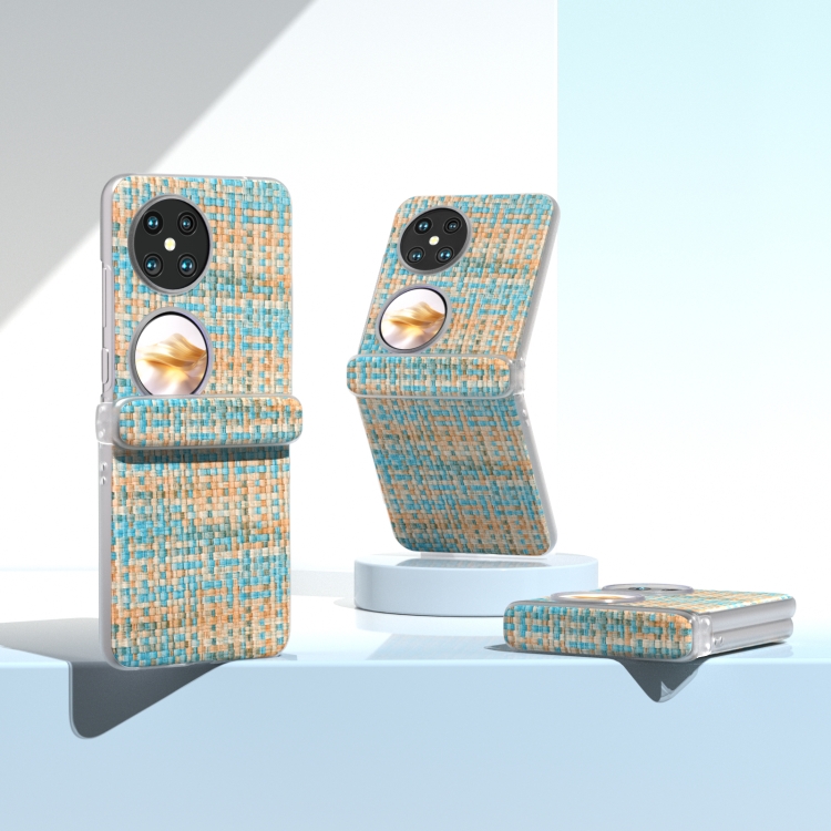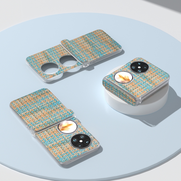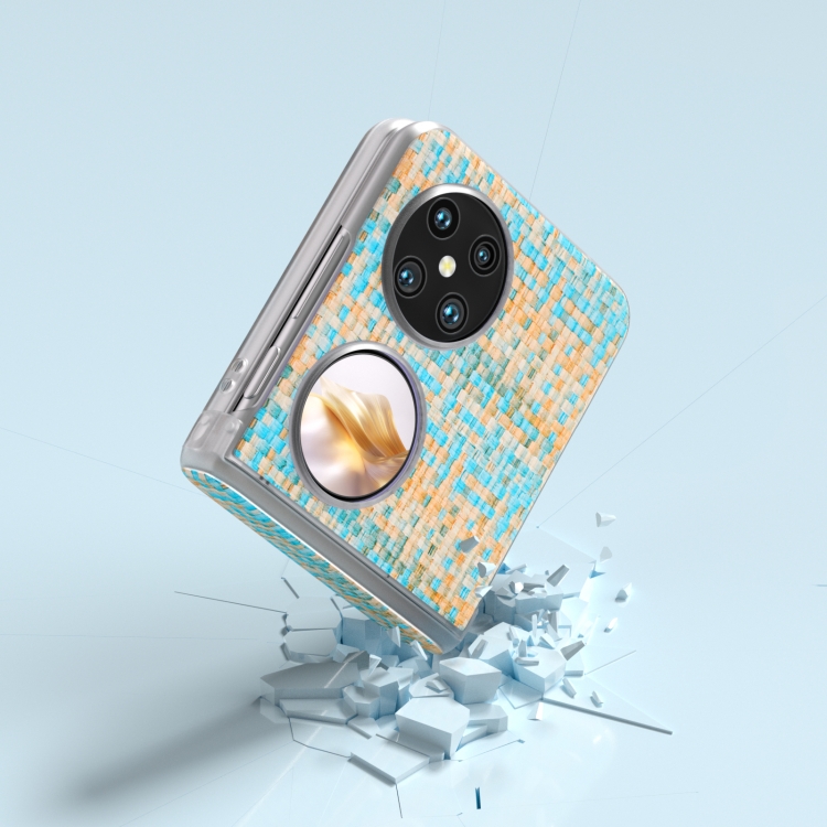 Caja 3 en 1 para Huawei Pocket 2 con Marco Translúcido Esmerilado y Textura Rómbica (Azul)
