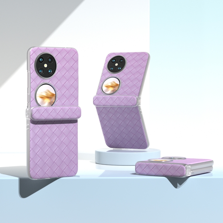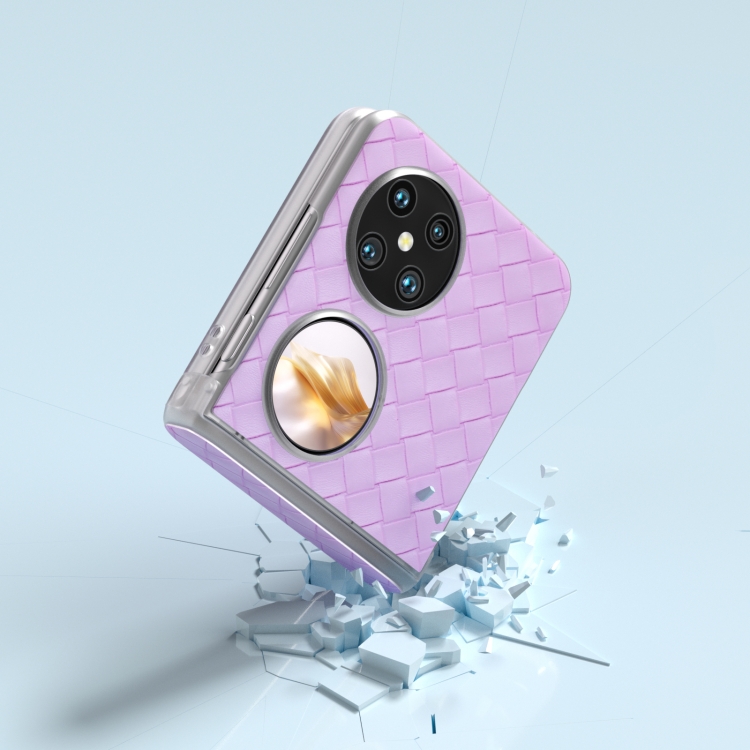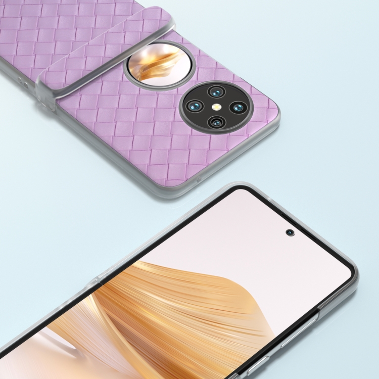 Funda 3 en 1 para Huawei Pocket 2 de PU con Marco Translúcido Esmerilado y Textura Tejida (Púrpura)