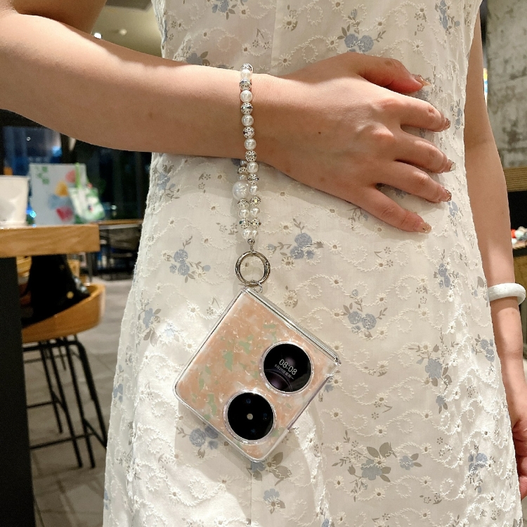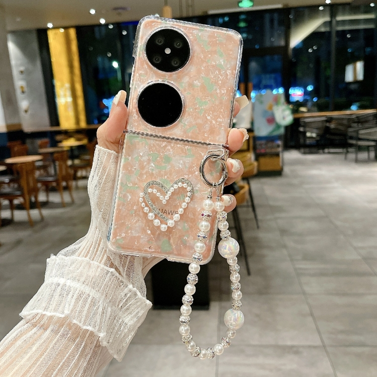 • 1x Estuche para Huawei Pocket 2 con patrón de corazón y textura de concha nacarada con pulsera (Rosa)