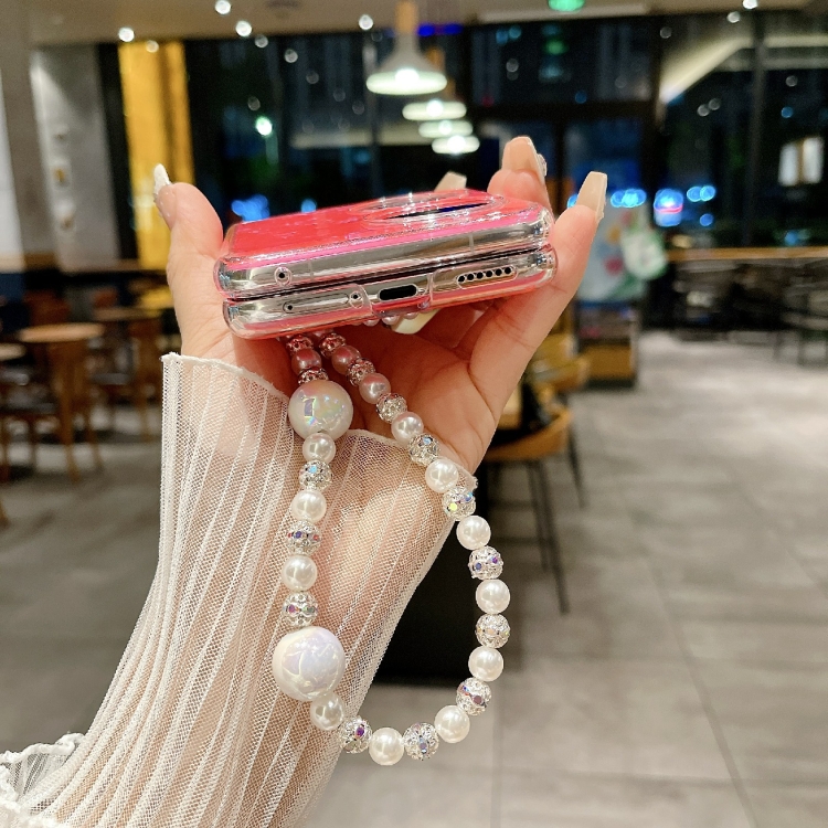 Estuche para Huawei Pocket 2 con Patrón de Corazón y Textura de Concha Nacarada con Pulsera (Rosa)