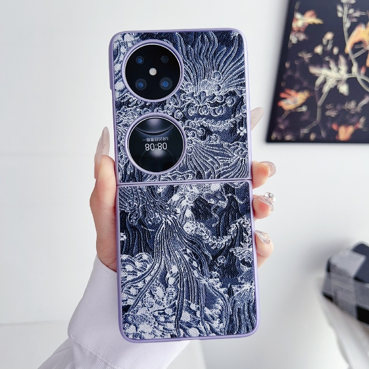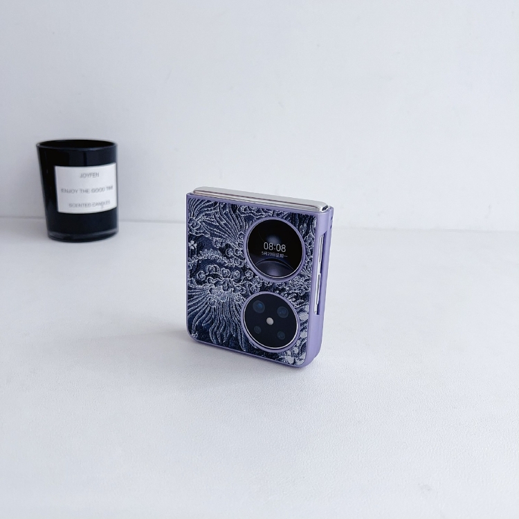 Estuche para Huawei Pocket 2 Cobertura Total Bordado (Azul)